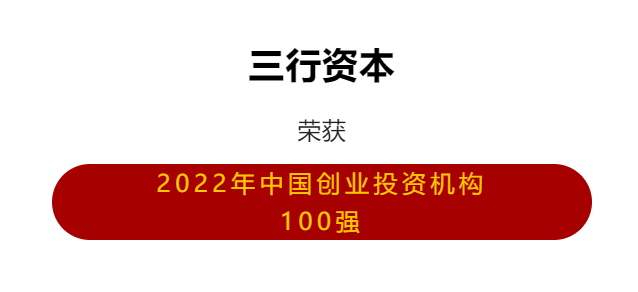 三行资本凭借2022年股权投资“募、投、管、退”出色的综合战绩,荣誉跻身“2022年中国创业投资机构100强”。