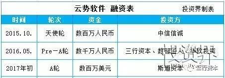 投资界5月22日独家消息,生命科学领域SaaS服务商云势软件(FORCECLOUDS.COM)已于2017年初完成由斯道资本(原富达亚洲风险投资基金)独家投资的数百万美元A轮融资,资金已全部到账。截止目前,云势软件已获得国内外顶级风险投资公司总金额逾亿元人民币融资,具体融资情况如下: