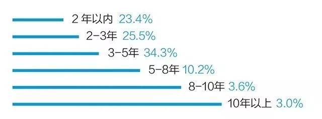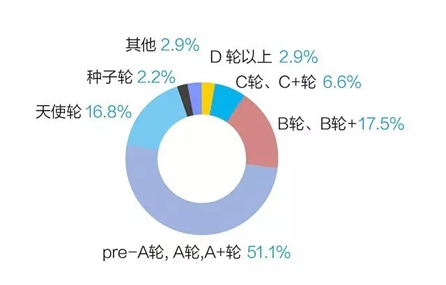 处于种子轮和天使轮的创业公司接近20%,超过半数企业处于Pre-A、 A、 A+轮,处于D轮以上的企业仅2.9%