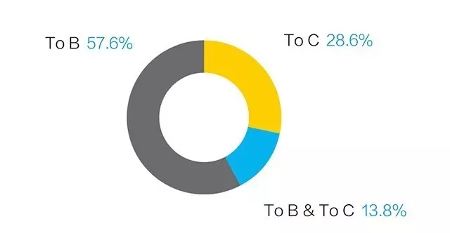 从服务对象来看,57.6%的企业面向B端客户, 28.6%面向C端用户,13.8%的企业两者兼有