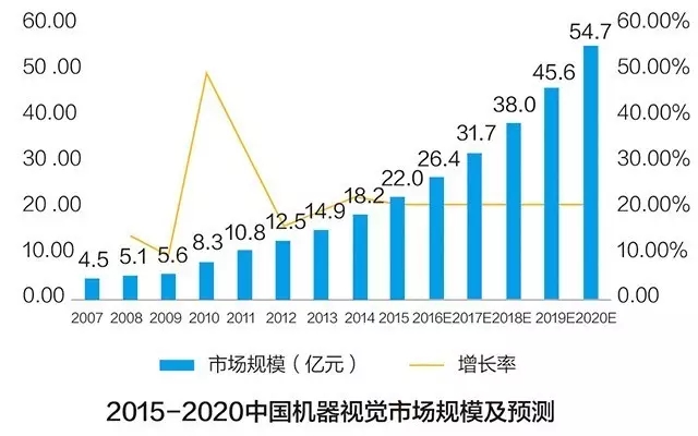 产业规模:2020 年中国机器视觉市场规模预计将达到54.7 亿元人民币