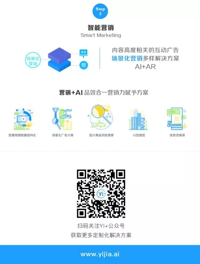 “Yi+ Smart Marketing”(Yi+智能营销解决方案)对视频场景、物体与人脸的识别助力实时精准营销。无论是广告主还是媒体平台,品效合一的营销能力是大家共同的目标。