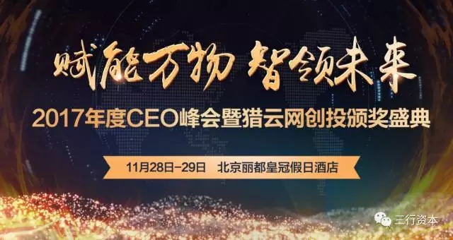 11月29日,猎云网在北京丽都皇冠假日酒店隆重举办了“赋能万物 智领未来——2017年度CEO峰会暨猎云网创投颁奖盛典”。此次颁奖盛典上,三行资本及已投企业荣获四项大奖。