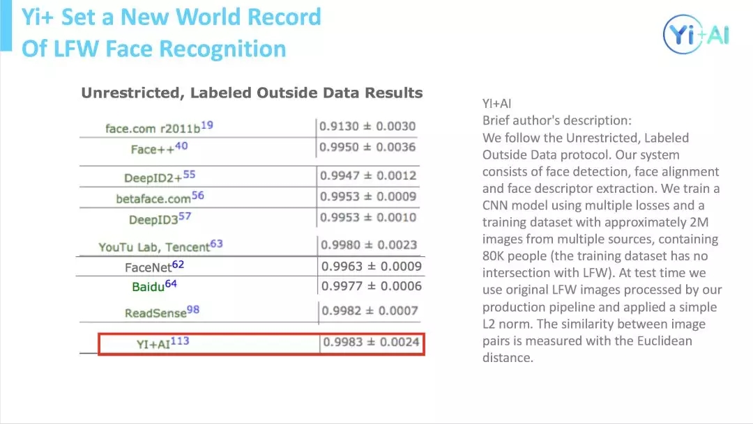 Yi+人脸识别准确率取得LFW项目上的世界第一。
