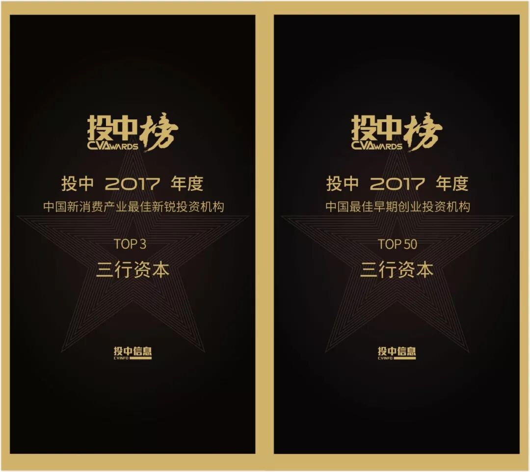 4月23日,由投中举办的第12届中国投资年会在上海开幕,备受行业关注的2017年度投中榜也同时揭晓。三行资本荣获荣获投中“2017年度中国新消费产业 最佳新锐投资机构TOP3”、“2017年度中国最佳早期创业投资机构TOP50”。