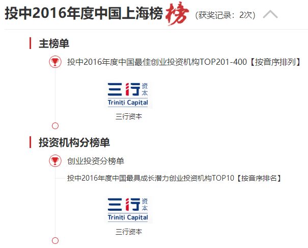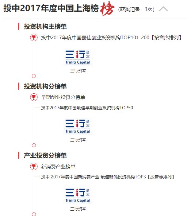 三年来,在创业者、投资人们的关注与支持下,三行资本快速成长,投中榜单已连续上榜三年,感谢投中榜、行业和创业者们的认可。