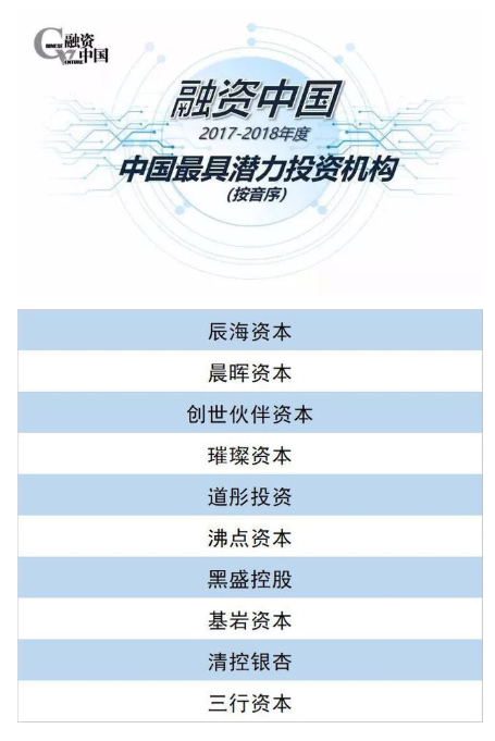 三行资本荣获“融资中国2017-2018年度中国最具潜力投资机构”
