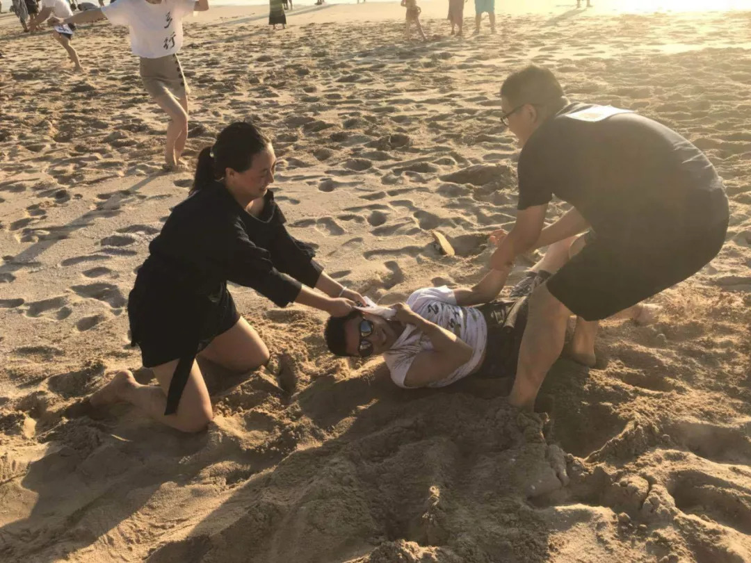 先放一张金色沙滩,外加活力四射的小伙们照片一张。因为下面即将发现实版的“绝地求生”。