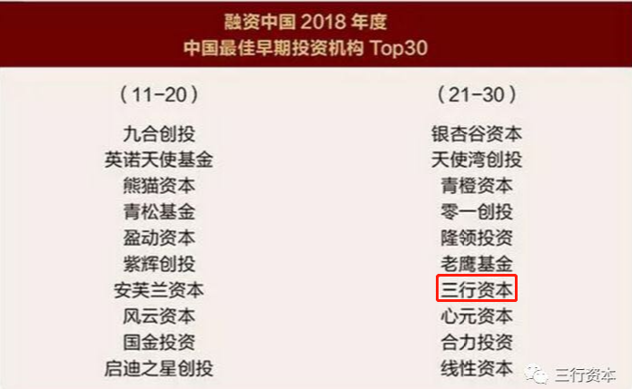 融资中国2019(第八届)资本年会于2019年1月15日-18日隆重召开,会上正式颁布2018年度股权投资领域10大综合榜单。整体榜单耗时1800+小时,通过评判综合实力、募资能力、资管能力、投资能力、退出情况、诚信情况以及媒体视角等7大核心纬度筛选出国内年度顶尖人物、机构、企业等。三行资本在此次资本年会喜获“2018年度 中国最具成长价值投资机构Top 10”和“2018年度中国最佳早期投资机构Top30”两项大奖。