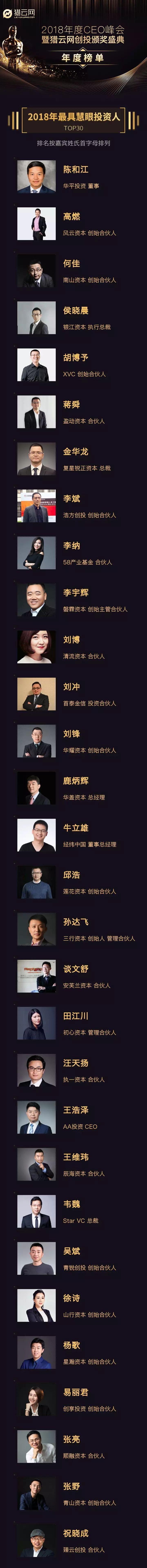 2018年最具慧眼投资人TOP30榜单