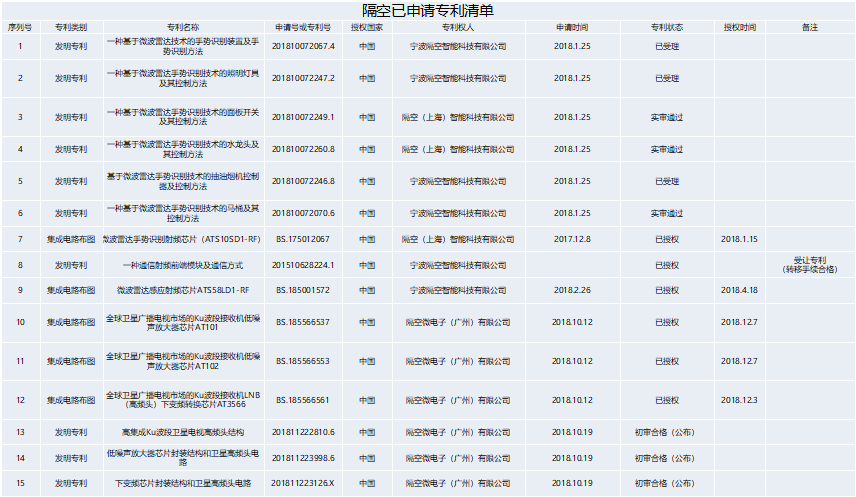 除了资本市场的垂青,“中科院出身,军工血统”的隔空智能亦曾获得多项荣誉,入选多个政府帮扶计划,成为其发展路上的重要助推器。隔空智能最早由中科院无线传感网与通信重点实验室所孵化,技术源自于军工领域中的微型毫米波近程雷达探测器。2018年4月,隔空智能与中科院无线传感网与通信重点实验室签订战略合作协议;7月,获批成为“宁波市2018年第一批创新型初创企业”和“宁波市2018年第三批入库科技型中小企业”;9月,入选2018年宁波市“3315资本引才计划”与“创业鄞州·精英引领计划”。