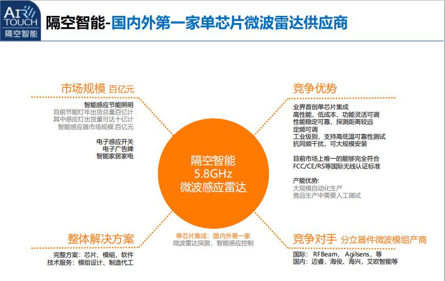 • 2019年6月,5.8GHz微波定频雷达射频芯片及传感器正式量产出货;