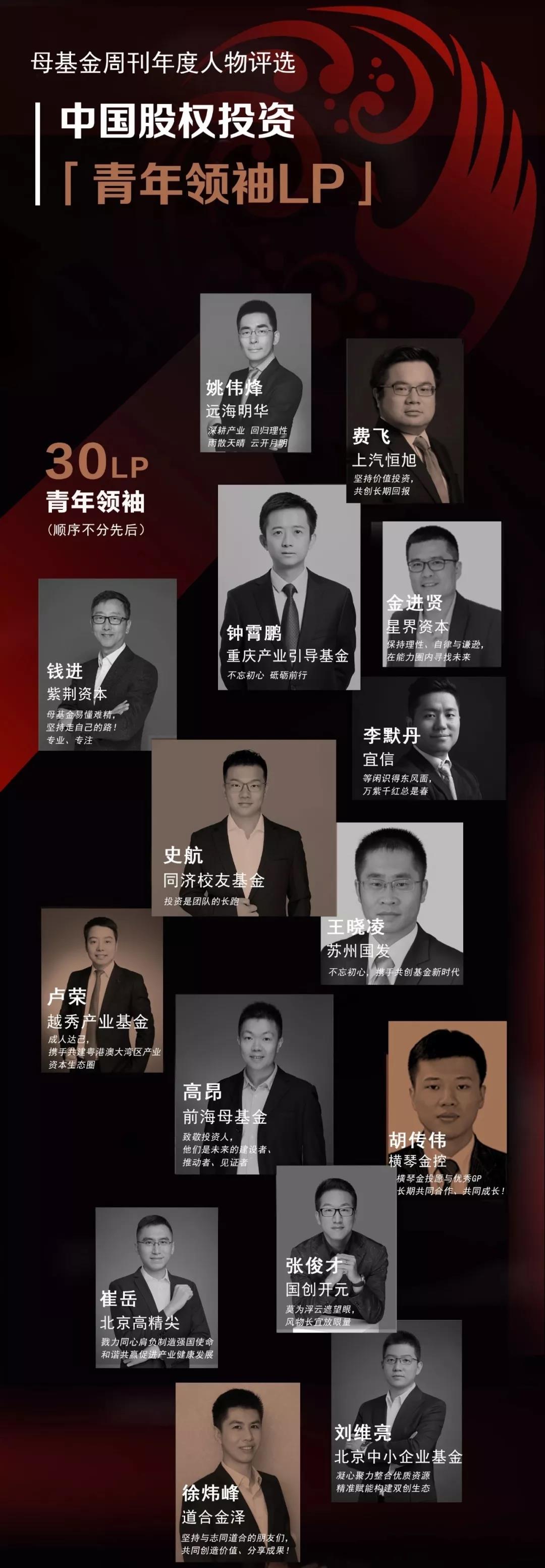 近日,《母基金周刊》在新中国70年华诞余温尚存之际,表彰了在私募股权投资领域70位业绩卓著贡献突出的行业领袖,并发布了中国股权投资「青年领袖LP和GP30」以此为新中国70年华诞献礼。