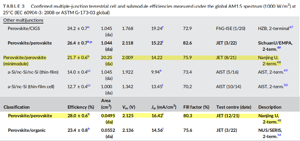 然而,钙钛矿单层电池理论效率极值可达33%,全钙钛矿双结叠层转换效率可达45%、全钙钛矿三结叠层转换效率可达50%,从理论数值上远超传统晶硅电池转化效率。