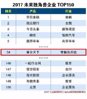 2017年7月20日,由中国科学院《互联网周刊》杂志评选出的“2017未来独角兽企业TOP150”榜单正式揭晓。此榜单涵盖了近年来互联网风口下最具发展潜力、势头正劲的未来独角兽企业。易果生鲜强势上榜,居第20位。 所谓“未来独角兽”,意味着其创新能力极强,市场潜力巨大,具备成为......